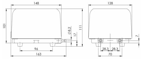 電壓 : 220/240VAC 50Hz 最大流量 : 27L/min 最大吸力 :320mbar